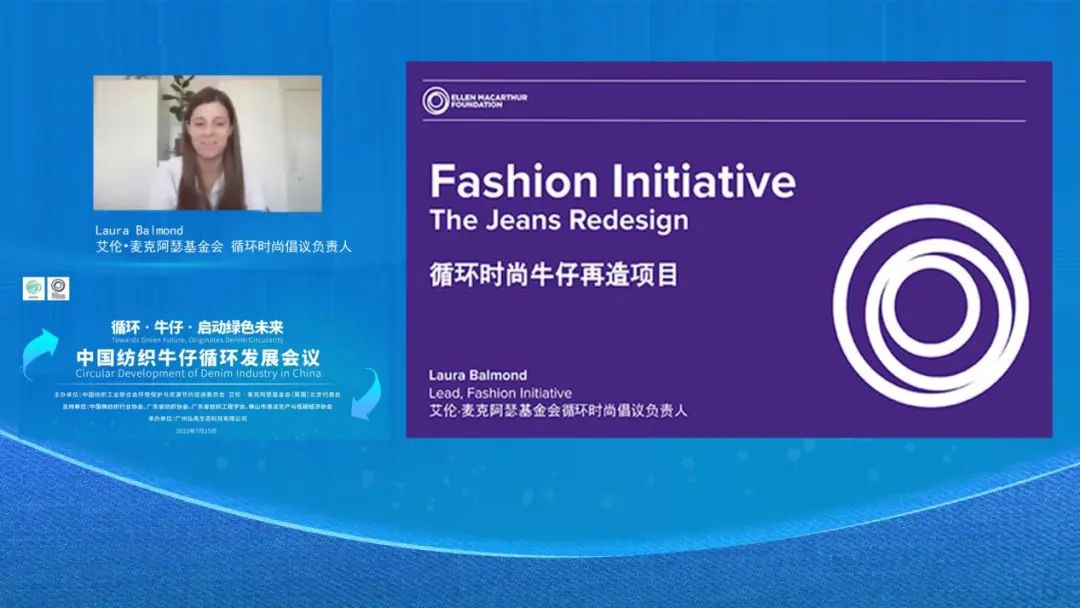 艾倫•麥克阿瑟基金會(huì)循環(huán)時(shí)尚倡議負(fù)責(zé)人Laura Balmond就“循環(huán)時(shí)尚牛仔再造項(xiàng)目”進(jìn)行了分享。目前,全球有200多個(gè)品牌、企業(yè)和機(jī)構(gòu)參與了“循環(huán)時(shí)尚牛仔再造項(xiàng)目”,超過80%的參與者從始至終遵循了指南原則,超過50萬(wàn)條牛仔綠色產(chǎn)品最終進(jìn)入市場(chǎng),并且提出了可規(guī)模化應(yīng)用的解決方案,通過“取消鉚釘使用、化學(xué)品與工藝流程安全、家庭機(jī)洗耐用性標(biāo)準(zhǔn)”等方面,使牛仔循環(huán)產(chǎn)品的比例顯著提高。今后,基金會(huì)將通過開展跨價(jià)值鏈協(xié)作,在產(chǎn)品政策、激勵(lì)設(shè)施等方面,繼續(xù)推動(dòng)循環(huán)時(shí)尚牛仔再造項(xiàng)目的成果擴(kuò)大化。
