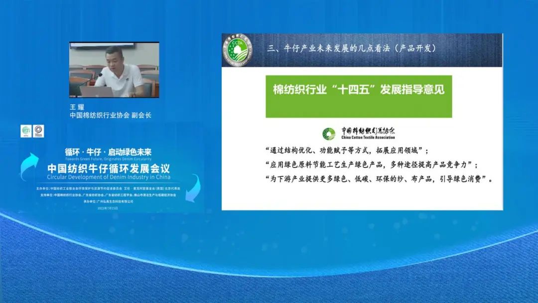 為破解資源環(huán)境約束、應(yīng)對(duì)氣候變化,貫徹《“十四五”循環(huán)經(jīng)濟(jì)發(fā)展規(guī)劃》、《關(guān)于加快推進(jìn)廢舊紡織品循環(huán)利用的實(shí)施意見》等有關(guān)規(guī)定,構(gòu)建資源循環(huán)型產(chǎn)業(yè)體系和廢舊物資循環(huán)利用體系,7月15日,中國(guó)紡織工業(yè)聯(lián)合會(huì)環(huán)境保護(hù)與資源節(jié)約促進(jìn)委員會(huì)攜手艾倫·麥克阿瑟基金會(huì)共同主辦,以“循環(huán)•牛仔•啟動(dòng)綠色未來(lái)”為主題的牛仔循環(huán)發(fā)展線上會(huì)議舉行。