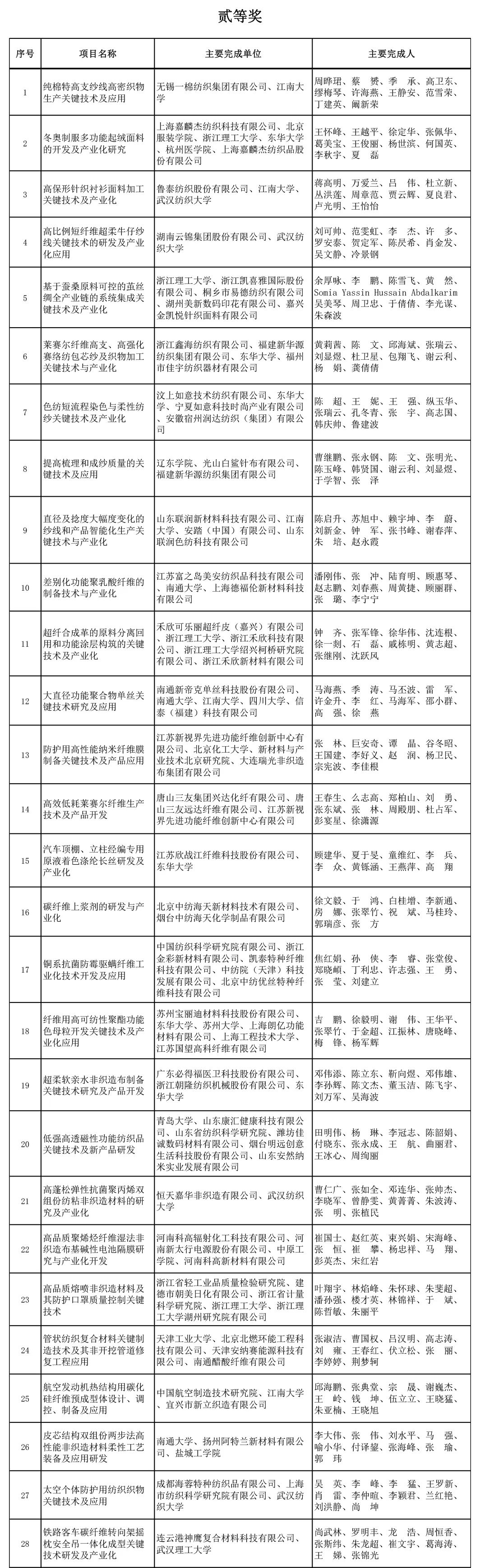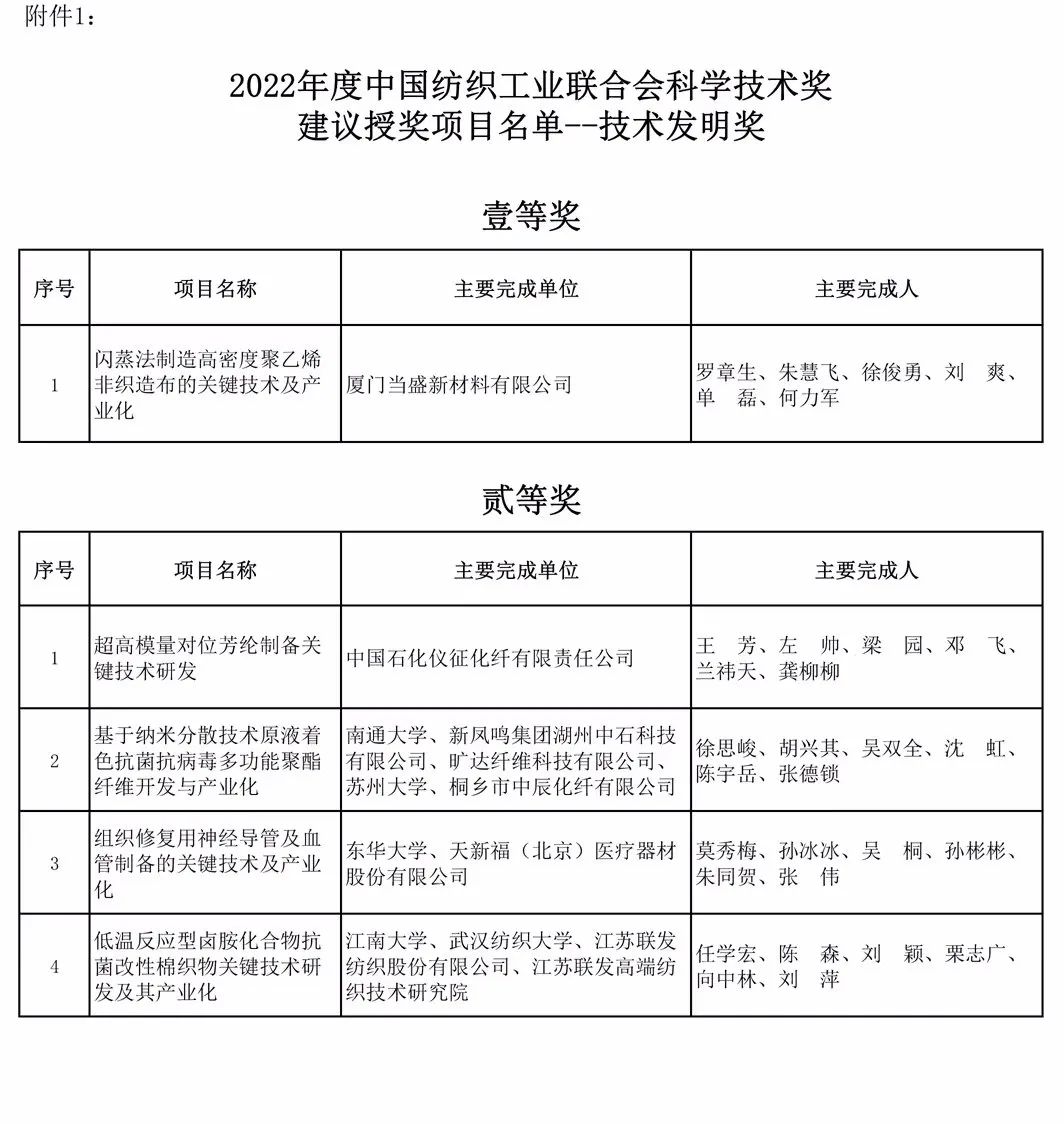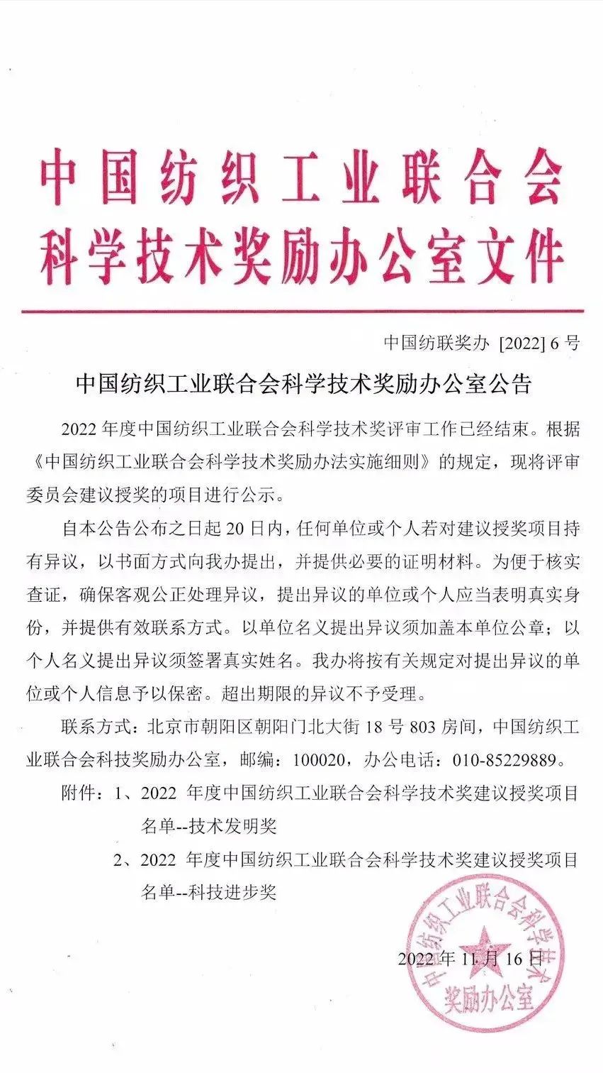 2022年中國紡織工業(yè)聯(lián)合會科學(xué)技術(shù)獎建議授獎項(xiàng)目公示