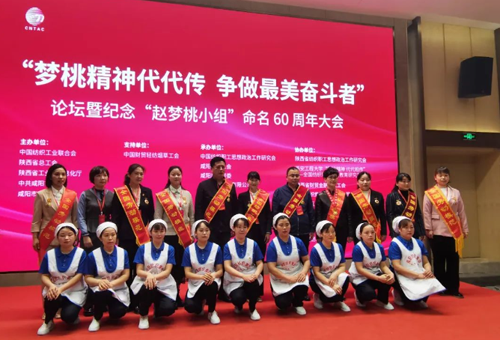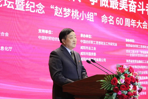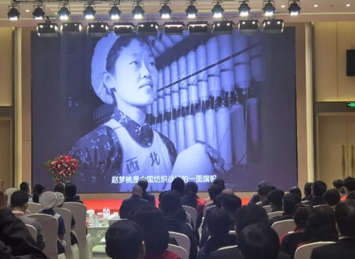 為紀(jì)念“趙夢桃小組”命名 60 周年,進一步推動習(xí)近平總書記對“趙夢桃小組”親切勉勵貫徹落實,激勵全國紡織行業(yè)傳承弘揚“夢桃精神”,為建設(shè)現(xiàn)代化紡織強國再立新功,4月25日,“夢桃精神代代傳,爭做最美奮斗者”紀(jì)念“趙夢桃小組”命名60周年大會在陜西省咸陽市舉行。會議由中國紡織工業(yè)聯(lián)合會、陜西省總工會、陜西省工業(yè)和信息化廳、中共咸陽市委員會、咸陽市人民政府主辦;中國財貿(mào)輕紡煙草工會支持;中國紡織職工思想政治工作研究會、咸陽市總工會、咸陽市國資委、咸陽紡織集團有限公司承辦;陜西省紡織職工思想政治工作研究會 、西安工程大學(xué)“夢桃精神 代代相傳”——全國紡織思想政治教育基地、陜西省財貿(mào)金融輕工工會、西安紡織集團有限責(zé)任公司、際華三五一三實業(yè)有限公司、陜西雅蘭紡織集團有限公司協(xié)辦。 中國紡織工業(yè)聯(lián)合會會長孫瑞哲、原會長王天凱、黨委副書記陳偉康、原副會長楊紀(jì)朝,中國紡聯(lián)副秘書長、外事辦公室主任袁紅萍,中國紡聯(lián)黨委辦公室主任、中國紡織職工思想政治工作研究會會長邢冠蕾,中國財貿(mào)輕紡煙草工會二級巡視員呂杰,陜西省人民政府辦公廳副主任徐剛,陜西省總工會黨組副書記、常務(wù)副主席王軍,陜西省工業(yè)和信息化廳黨組成員、陜西經(jīng)濟聯(lián)合會會長楊悅,中共咸陽市委書記夏曉中,中共咸陽市委副書記、市人民政府市長冷勁松,咸陽市人大常委會副主任、市總工會主席田一泓,陜西省人民政府國有資產(chǎn)管理委員會黨委副書記、一級巡視員郁偉,西安工程大學(xué)黨委副書記趙小峰,陜西省思想政治工作研究會秘書長張虎鳴,陜西省財貿(mào)金融輕工工會主席趙亮,陜西省紡織職工思想政治工作研究會會長侯代會,以及來自中國紡聯(lián)、陜西省有關(guān)部門、咸陽市委、咸陽市人民政府有關(guān)負責(zé)同志,“趙夢桃小組”老組長代表,各省市紡織協(xié)會、排頭企業(yè)、產(chǎn)業(yè)集群代表,紡織高校及陜西省紡織服裝行業(yè)、協(xié)會代表,全國勞模、全國紡織優(yōu)秀班組長代表,咸陽紡織集團干部職工代表等200余人與會。