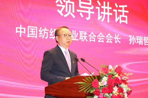 中國紡織工業(yè)聯(lián)合會會長孫瑞哲為咸陽紡織集團授牌。