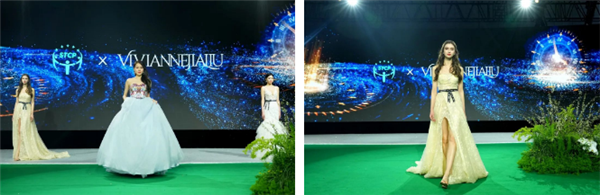 隨著現場的燈光漸暗,一場以“綠色纖維”為原料的成衣走秀拉開帷幕。本次大秀主要呈現了禮服、運動裝、婚紗三大品類的服裝,參與的高定和品牌有:VIVIANNEJIALIU、PJ、芮邦、馬克華菲、馬克•蝶麗奧娜。模特身著華美絢爛的色彩禮服、時尚輕便的運動裝以及飄逸靈動的紗裙游走在T臺上,演繹著“綠色纖維”的時尚魅力,直觀生動的展示了“綠色纖維”多場景應用的適配性。