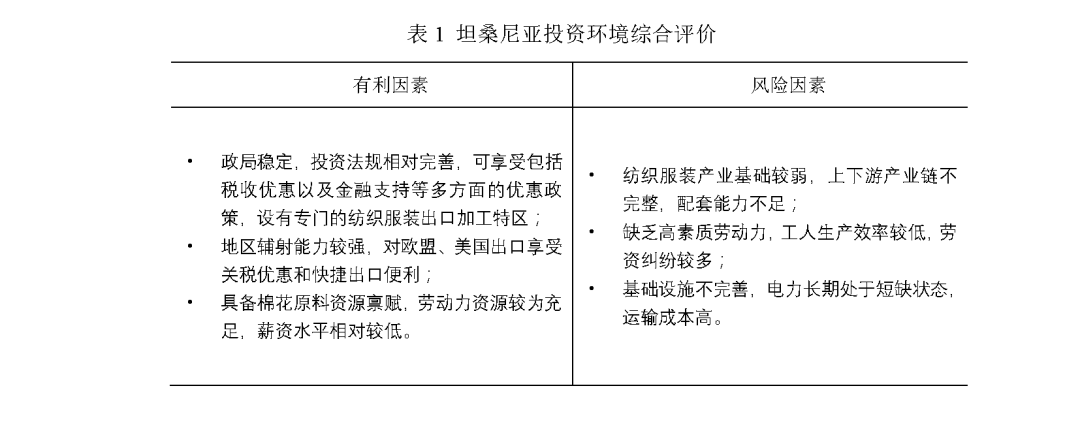 (1)坦桑尼亞發展紡織服裝業的意愿較強,將紡織服裝業列為優先投資領域,設立紡織品服裝出口加工區,為入駐的海外投資企業提供多項優惠政策。