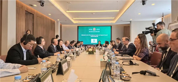在與外方會談中,中國紡織工業聯合會副會長徐迎新先生就代表團組成、中國紡織服裝業情況、雙邊貿易情況等做詳細介紹,并表達希望通過進一步加深溝通了解,繼續推動兩國紡織服裝產業合作走深走實,在互利共贏中實現共同發展。