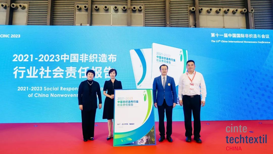 2023年9月19日,由中國紡織工業聯合會社會責任辦公室、中國產業用紡織品行業協會、賽得利編寫的《2021-2023中國非織造布行業社會責任報告》在上海正式亮相,這是三家單位聯合發布的第二份中國非織造布行業社會責任報告。