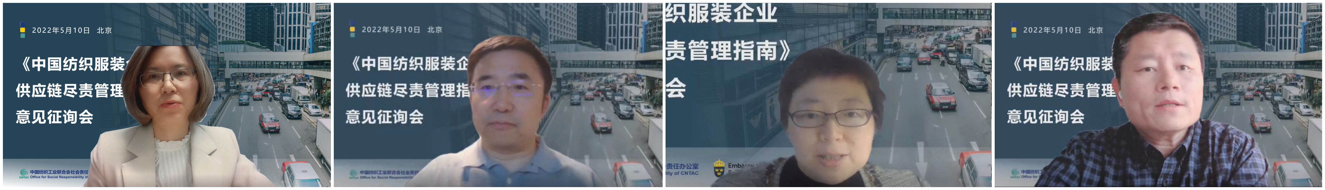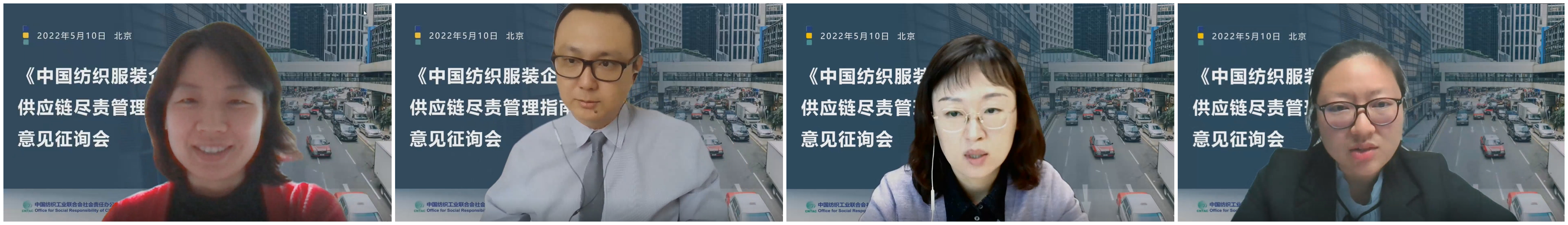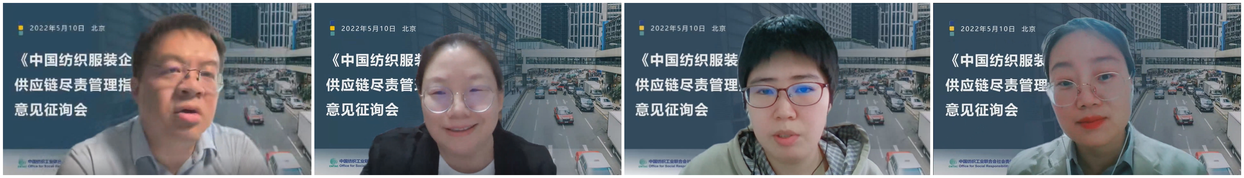 2022年5月10日下午,由中國紡織工業(yè)聯(lián)合會社會責(zé)任辦公室主辦的《中國紡織服裝企業(yè)社會與環(huán)境盡責(zé)管理指南(征求意見稿)》(暫定名,下稱“《盡責(zé)管理指南》”或“指南”)意見征詢會在線上成功舉辦。來自南開大學(xué)、北京工商大學(xué)、聯(lián)合國開發(fā)計劃署(UNDP)、聯(lián)合國兒童基金會(UNICEF)、經(jīng)濟(jì)合作與發(fā)展組織(OECD)、德國國際合作機(jī)構(gòu)(GIZ)等十五家機(jī)構(gòu)的二十余位專家參加了本次會議,就盡責(zé)管理指南的改進(jìn)與實(shí)施進(jìn)行了全面、深入的討論。