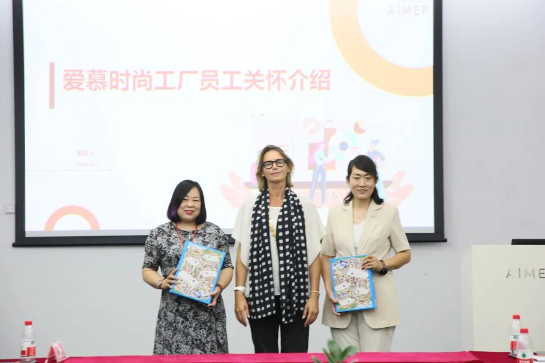愛慕時尚工廠總經理關春紅女士首先介紹了愛慕在員工關懷、親子關系、員工生活、企業福利、員工權益、以及環境保護等方面做出的諸多努力。順義區婦聯主席肖雅文女士介紹了順義區推進婦女、兒童及家庭工作的情況,指出順義婦女聯合會和工會組織已全面覆蓋順義區430多個村鎮和120萬常駐人口,并正在通過培訓、法律服務、多方交流等措施支持順義區的企業落實更加家庭友好的政策和行動。
