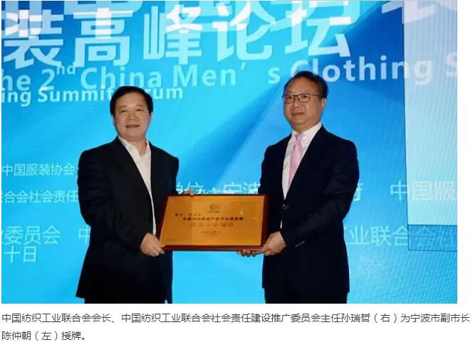 10月20日,《寧波市紡織服裝產業可持續發展報告》發布儀式暨“中國紡織服裝產業可持續發展創新示范城市”授牌儀式在浙江省寧波市“中國男裝高峰論壇”上