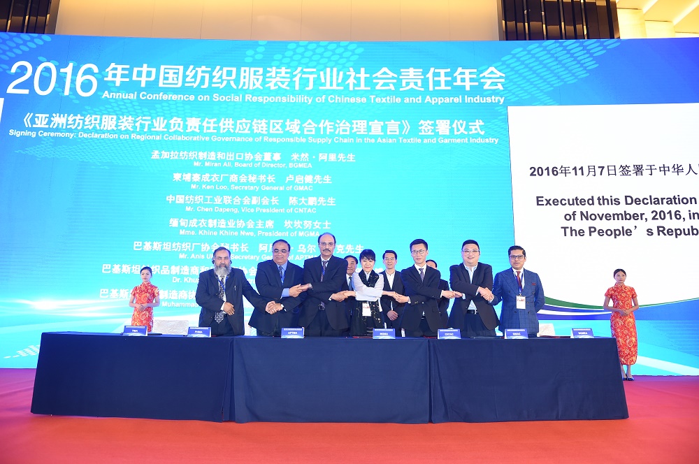 2016年11月7日下午,中國紡織工業聯合會(以下稱中紡聯)在上海舉辦2016年中國紡織服裝行業社會責任年會。 本次年會由中國紡織工業聯合會主辦,工業和信息化部、國務院國