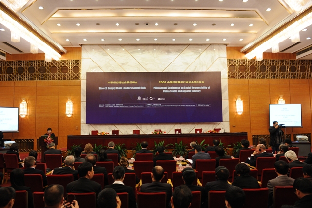 --中歐供應鏈社會責任峰會暨紡織服裝行業(yè)社會責任年會隆重召開 2008年11月18日,中國紡織工業(yè)協(xié)會與歐洲外貿(mào)協(xié)會在北京人民大會堂召開“中歐供應鏈社會責任峰會&rdquo