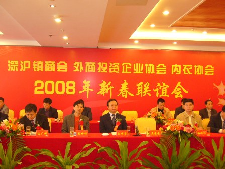 2008年1月9日,中國紡織工業協會孫瑞哲副會長一行應邀出席中國內衣名鎮――深滬鎮(福建晉江)商會、外商投資企業協會、內衣協會聯合舉辦的“2008年新春聯誼會”。