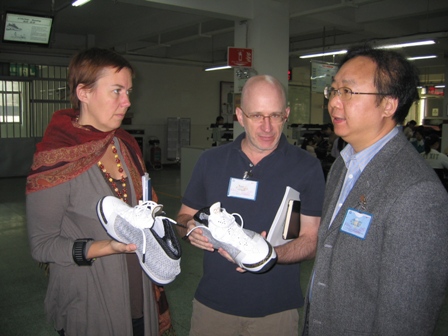 2008年3月4日,應耐克(NIKE)公司的邀請,中國紡織工業協會副會長兼中國紡織工業協會社會責任建設推廣辦公室主任孫瑞哲(圖右一)在廣東省東莞市會見了耐克公司副總裁Hannah Jones女士(圖左一)一行,就行業協會與國際品牌