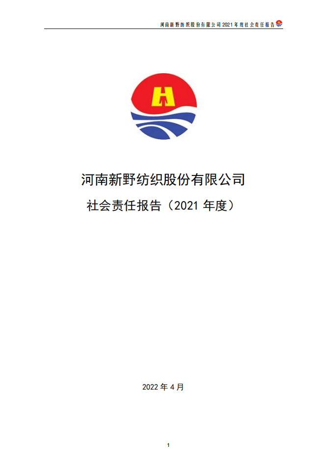 河南新野紡織股份有限公司社會(huì)責(zé)任報(bào)告(2021 年度)